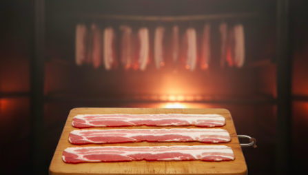 Streaky Bacon cut from the belly of pig, has alternating layers of fat and meat, giving it a striped (streaky) look.